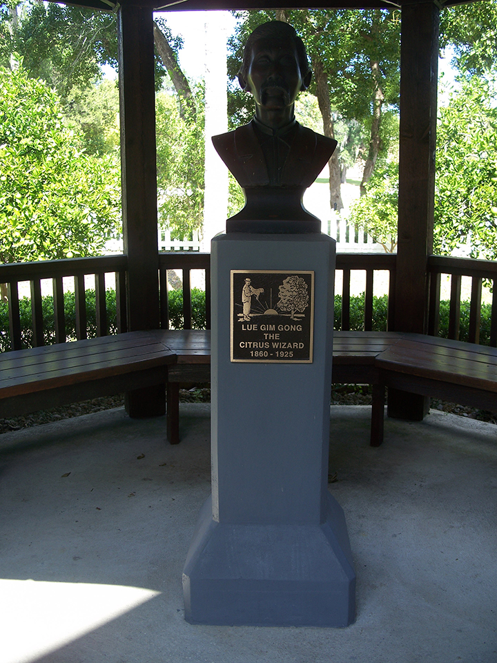 Memorial bust of Lue Gim Gong in Deland, Florida.